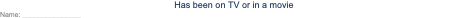 3. Has been on TV or in a movie Name: _______________ What show or movie? _______________