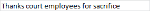 20. Thanks court employees for sacrifice