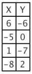 4. {(1,0) (2,12) (6,5) (1,-3)}