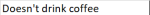 Hasa catWho haslived in thesame houseall their lifePlayssports forEY teamIs atwinBorn inthe samemonth asyouWho hasnicknameat work?Is onSanlamIslefthandedNot born inJohannesburgHas neverticked upAFSHasrepresentedtheircountryHas evereaten aninsectDoesn'tdrinkcoffeeHas 3 ormore siblings(i.e. 4 ormorechildren)IsvegetarianIs onInvestecMet a1styearHas evereaten aninsectHasbeen toChinaMet a AD /SeniormanagerHasbeenon JITDoesn'tlikechocolateDrives ayellowcarIs onABSAHasclientsoutsideFS?Play amusicalinstrumentMet amanager/AMHasjoined EYin the last6 monthsTransferredfromanotherfirmHolds aschool /universityrecord (andin what)Has amotorcycle/boatlicenseSpeaksmore than4languagesHasworked inCorporateMet aPartnerHas atattooHasskydived?Met a2nd or3rd yearDoes noteatpineappleHasbeen toEuropeHas aDogHasa catWho haslived in thesame houseall their lifePlayssports forEY teamIs atwinBorn inthe samemonth asyouWho hasnicknameat work?Is onSanlamIslefthandedNot born inJohannesburgHas neverticked upAFSHasrepresentedtheircountryHas evereaten aninsectDoesn'tdrinkcoffeeHas 3 ormore siblings(i.e. 4 ormorechildren)IsvegetarianIs onInvestecMet a1styearHas evereaten aninsectHasbeen toChinaMet a AD /SeniormanagerHasbeenon JITDoesn'tlikechocolateDrives ayellowcarIs onABSAHasclientsoutsideFS?Play amusicalinstrumentMet amanager/AMHasjoined EYin the last6 monthsTransferredfromanotherfirmHolds aschool /universityrecord (andin what)Has amotorcycle/boatlicenseSpeaksmore than4languagesHasworked inCorporateMet aPartnerHas atattooHasskydived?Met a2nd or3rd yearDoes noteatpineappleHasbeen toEuropeHas aDog