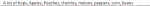 A lot of hops, Apples, Peaches, cherries, melons, peppers, corn, beans