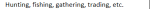 Hunting, fishing, gathering, trading, etc.