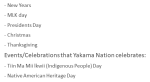 - Tiin Ma Mii lkwii (Indigenous People) Day