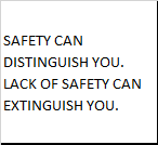 SAFETY CAN DISTINGUISH YOU. LACK OF SAFETY CAN EXTINGUISH YOU.