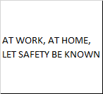 AT WORK, AT HOME, LET SAFETY BE KNOWN