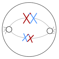 Homologouschromosomesare pulled tothe oppositeside of the cellTelophase246Prophase1Metaphase2InterphaseHomologouschromosomesline up in thecenter of thecellMetaphase1GametesAnaphase1Crossingover4Telophase1Prophase2Anaphase223Homologouschromosomesare pulled tothe oppositeside of the cellTelophase246Prophase1Metaphase2InterphaseHomologouschromosomesline up in thecenter of thecellMetaphase1GametesAnaphase1Crossingover4Telophase1Prophase2Anaphase223