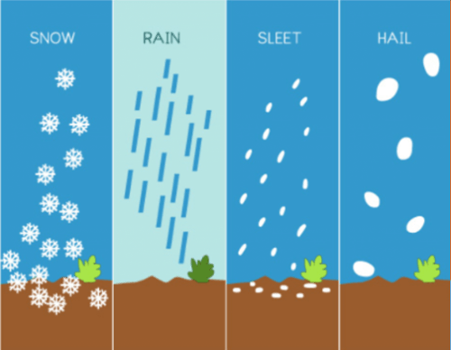 B-When liquid water falls from the clouds as Rain Snow Sleet or Hail