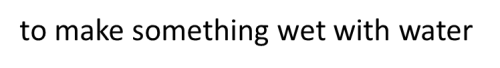 18. to make something wet with water