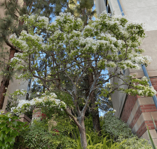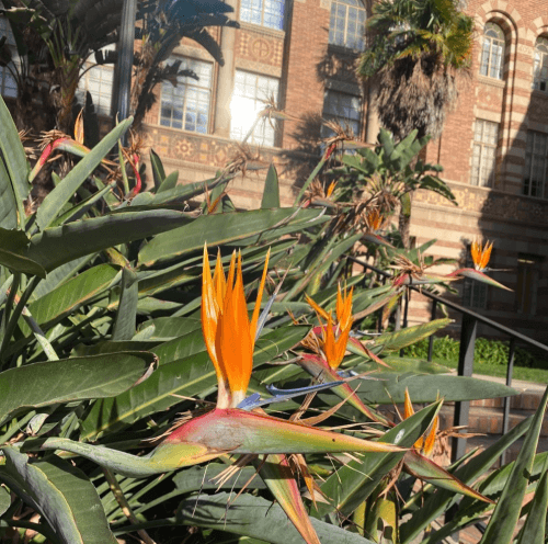 Dark-eyedJunco  EverywhereOregon Grape   Rolfe HallCaliforniaPoppy  J.D. MorganCenterPerez's SeaLavender  De Neve PlazaGreenLiveforever  Franz HallIndianHawthorn School ofDentistryFox Squirrel   EverywhereBougainviellas   Dickinson CourtMediterraneanFan Palm  J.D. MorganCenterFringe Tree De NeveBirch Tangerine   De Neve PlazaHeavenlyBamboo  AckermanUnionPride ofMadeira  Haines Hall FishpoleBamboo  Royce Dr.Sausage Tree   Portola PlazaMoss Verbena  InvertedFountainJapanesePittosporum   Charles E. YoungDriveGum Rockrose  BotanicalGardenBush Lilies  InvertedFountain Fortnight Lilies   Moore HallBird-of-paradise    Ackerman UnionCanary IslandPine   Sculpture GardenDaylilies     Wallis AnnenbergStadiumJapaneseCamellia  Moore HallDark-eyedJunco  EverywhereOregon Grape   Rolfe HallCaliforniaPoppy  J.D. MorganCenterPerez's SeaLavender  De Neve PlazaGreenLiveforever  Franz HallIndianHawthorn School ofDentistryFox Squirrel   EverywhereBougainviellas   Dickinson CourtMediterraneanFan Palm  J.D. MorganCenterFringe Tree De NeveBirch Tangerine   De Neve PlazaHeavenlyBamboo  AckermanUnionPride ofMadeira  Haines Hall FishpoleBamboo  Royce Dr.Sausage Tree   Portola PlazaMoss Verbena  InvertedFountainJapanesePittosporum   Charles E. YoungDriveGum Rockrose  BotanicalGardenBush Lilies  InvertedFountainFortnight Lilies   Moore HallBird-of-paradise    Ackerman UnionCanary IslandPine   Sculpture GardenDaylilies     Wallis AnnenbergStadiumJapaneseCamellia  Moore Hall