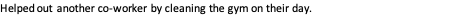 Helped out another co-worker by cleaning the gym on their day.