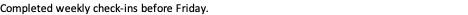 Completed weekly check-ins before Friday.