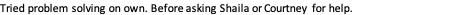 Tried problem solving on own. Before asking Shaila or Courtney for help.