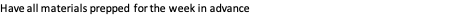 Have all materials prepped for the week in advance