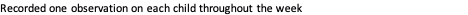 Recorded one observation on each child throughout the week