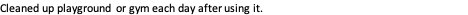 Cleaned up playground or gym each day after using it.