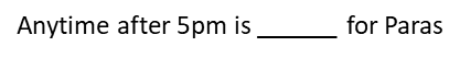 13. Anytime after 5pm is ______ for Paras