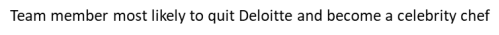 24. Team member most likely to quit Deloitte and become a celebrity chef