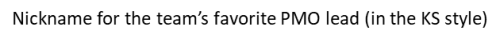 18. Nickname for the team’s favorite PMO lead (in the KS style)