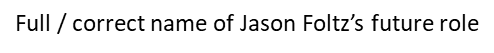 14. Full / correct name of Jason Foltz’s future role