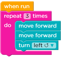 5. N-คำสั่งเดินไปข้างหน้า 2 ครั้งและหันซ้าย ทำซ้ำกัน 3 รอบ