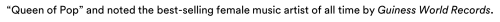 “Queen of Pop” and noted the best-selling female music artist of all time by Guinness World Records.