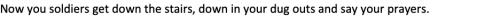 Now you soldiers get down the stairs, down in your dug outs and say your prayers.
