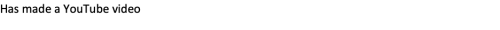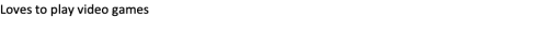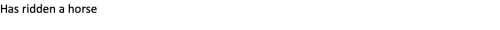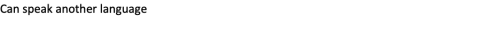 CanspeakanotherlanguageHatespizzaIs left-handedHas anoldersisterHas ayoungerbrotherLoves toplay videogamesHaswrittena blogHas morethan onedogWasborn inJuneIs anonlychildWasborn inFebruaryHas madeaYouTubevideoLovesmacaroni& cheeseHas neverbeen tothe beachPlays amusicalinstrumentNeverbeen onanairplaneHascurlyhairLovestodanceHas abeardHasridden ahorseRides amotorcycle Playsa sportHas beento 3continentsHas apet catCanspeakanotherlanguageHatespizzaIs left-handedHas anoldersisterHas ayoungerbrotherLoves toplay videogamesHaswrittena blogHas morethan onedogWasborn inJuneIs anonlychildWasborn inFebruaryHas madeaYouTubevideoLovesmacaroni& cheeseHas neverbeen tothe beachPlays amusicalinstrumentNeverbeen onanairplaneHascurlyhairLovestodanceHas abeardHasridden ahorseRides amotorcyclePlaysa sportHas beento 3continentsHas apet cat