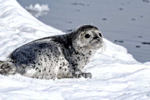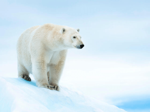 16. It's got white fur. It lives in the Arctic, on ice-covered waters.