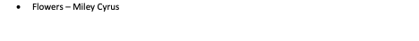 You Proof - Morgan Wallen Die For You The Weeknd Watching Strangers Smile - Parquet Courts Lonely Boy - The Black Keys Flowers Miley Cyrus Mr. Brightside The Killers Friends In Low Places - Garth Brooks Another One Bites the Dust - Queen Marceline - Vista Kicks I'm Good David Guetta Bottom of the Ocean - Briston Maroney Anti-Hero Taylor Swift Ways Roman Lewis Jolene - Dolly Parton As It Was Harry Styles Cigarettes In The Theater - Two Door Cinema Club Feel it Still - Portugal, the Man All My Ex's Live In Texas - George Strait No Body - Black Shelton Ain't No Rest for the Wicked Cage the Elephant You Talk Way too Much - The Strokes Heads Carolina - Cole Swindell Creepin Metro Boomin Should I Stay or Should I Go - The Clash You Proof - Morgan Wallen Die For You The Weeknd Watching Strangers Smile - Parquet Courts Lonely Boy - The Black Keys Flowers Miley Cyrus Mr. Brightside The Killers Friends In Low Places - Garth Brooks Another One Bites the Dust - Queen Marceline - Vista Kicks I'm Good David Guetta Bottom of the Ocean - Briston Maroney Anti-Hero Taylor Swift Ways Roman Lewis Jolene - Dolly Parton As It Was Harry Styles Cigarettes In The Theater - Two Door Cinema Club Feel it Still - Portugal, the Man All My Ex's Live In Texas - George Strait No Body - Black Shelton Ain't No Rest for the Wicked Cage the Elephant You Talk Way too Much - The Strokes Heads Carolina - Cole Swindell Creepin Metro Boomin Should I Stay or Should I Go - The Clash