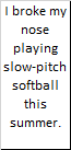 I broke my nose playing slow-pitch softball this summer.