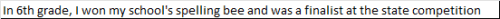 In 6th grade, I won my school's spelling bee and was a finalist at the state competition