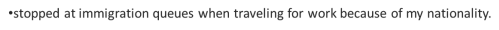 Stopped at immigration queues when traveling because of my nationality.