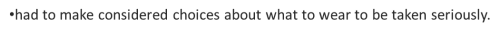 Had to make considered choices about what to wear to be taken seriously.