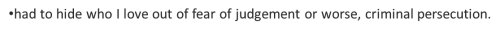 Had to hide who I love out of fear of judgement or worse, criminal persecution.