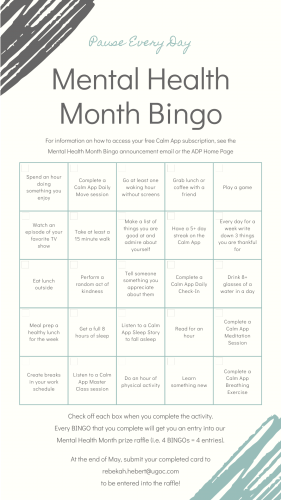 Drink 48 oz of water Donate to a charitable organization Write down 3 things you’re grateful for Call a friend or family member Stretch Test Take the stairs Sleep 8 hours Go outside for 10 minutes Treat yourself! Relax with a movie night
