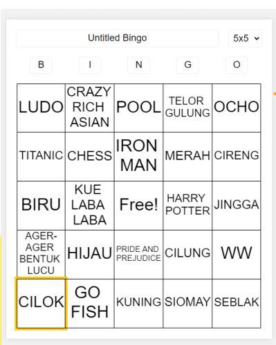 (Print) Use this randomly generated list as your call list when playing the game. Place some kind of mark (like an X, a checkmark, a dot, tally mark, etc) on each cell as you announce it, to keep track. You can also cut out each item, place them in a bag and pull words from the bag.