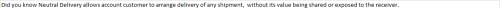 Did you know Neutral Delivery allows account customer to arrange delivery of any shipment, without its value being shared or exposed to the receiver.