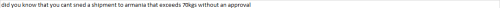did you know that you cant send a shipment to Armenia that exceeds 70kgs without an approval