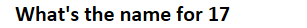 17. What's the name for 17