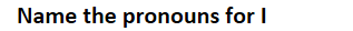 9. Name the pronouns for I