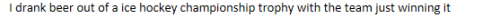 I drank beer out of a ice hockey championship trophy with the team just winning it