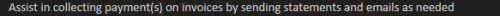 8. Assist in collecting payment(s) on invoices by sending statements and emails as needed