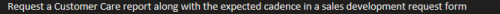 3. Request a Customer Care report along with the expected cadence in a sales development request form