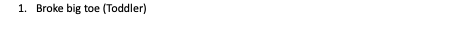 14. Broke big toe (Toddler)