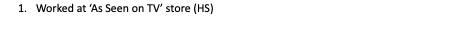 32. Worked at ‘As Seen on TV’ store (HS)