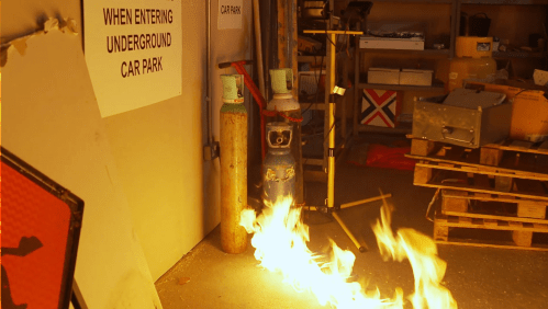 18. "The building site is on fire!"
