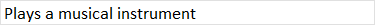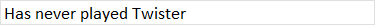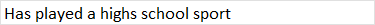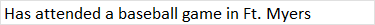 AttendedSummerCamp asa kidHasowned aconvertibleChecksFacebookdailyHas livedoutsidethe U.S.Knowshow tosurfNeverswearsSings intheshower/bathLikes catsbetterthan dogsHas playeda highschoolsportHas takenan oceancruiseKeepssparechange ina containerServedin themilitaryHas neverplayedTwisterDrinks 3 ormore cupsof coffee adayLovesto watchsportsHasattended abaseballgame in Ft.MyersHas 2or morepetsHascampedin a tentHasworked asa teacherIs "Flo-Grown"Washestheirown carIs theoldest oronly childHasbeen ina paradeLoveshorsesHasmades'moresWearscontactlensesHas beenscubadivingIs left-handedMade aNew Year'sresolutionand kept itLovesto readbooksPlays amusicalinstrumentAttendedSummerCamp asa kidHasowned aconvertibleChecksFacebookdailyHas livedoutsidethe U.S.Knowshow tosurfNeverswearsSings intheshower/bathLikes catsbetterthan dogsHas playeda highschoolsportHas takenan oceancruiseKeepssparechange ina containerServedin themilitaryHas neverplayedTwisterDrinks 3 ormore cupsof coffee adayLovesto watchsportsHasattended abaseballgame in Ft.MyersHas 2or morepetsHascampedin a tentHasworked asa teacherIs "Flo-Grown"Washestheirown carIs theoldest oronly childHasbeen ina paradeLoveshorsesHasmades'moresWearscontactlensesHas beenscubadivingIs left-handedMade aNew Year'sresolutionand kept itLovesto readbooksPlays amusicalinstrument