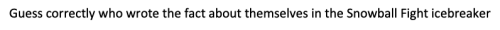 11. Guess correctly who wrote the fact about themselves in the Snowball Fight icebreaker