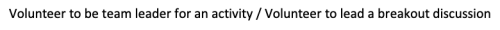 3. Volunteer to be team leader for an activity / Volunteer to lead a breakout discussion
