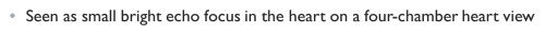 This is seen as small bright echogenic focus in the heart on a four-chamber heart view